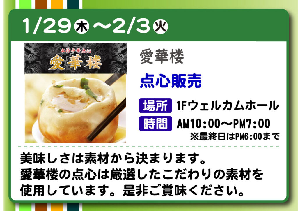 【愛華楼】 点心販売