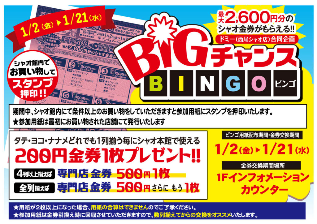 【BIGチャンスBINGO】お買い物してスタンプを集めて金券をもらおう!