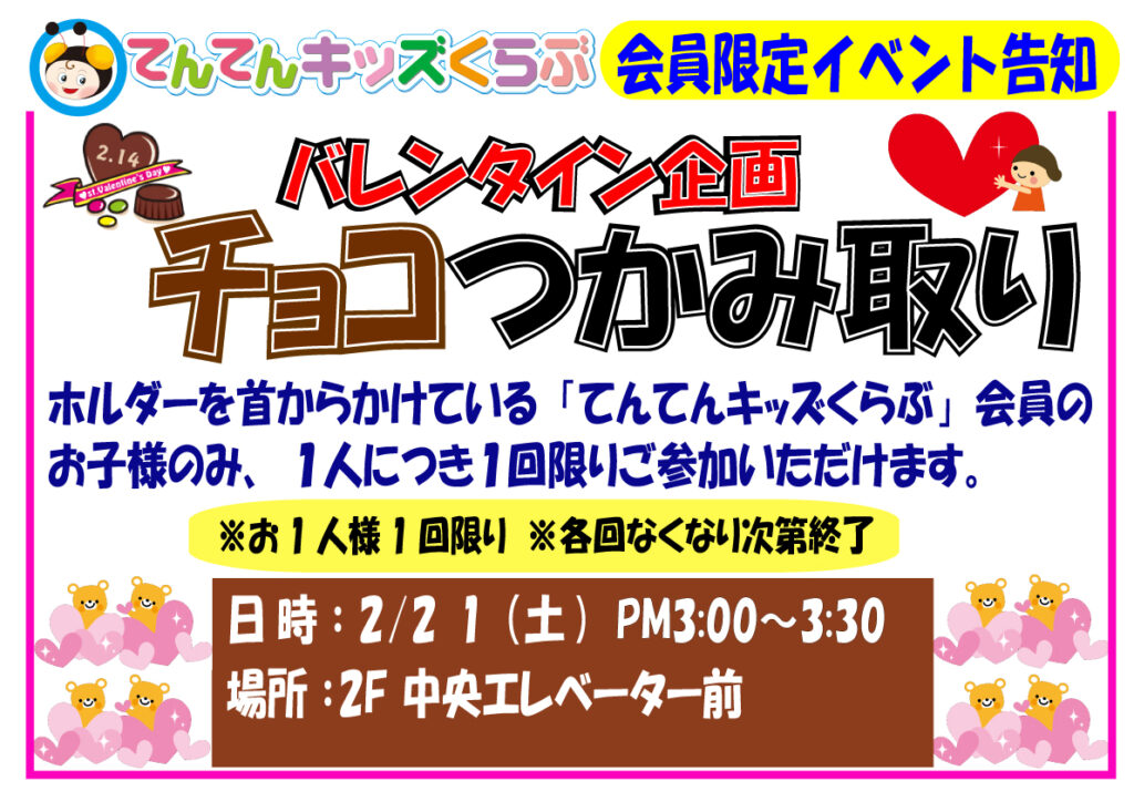 キッズくらぶ会員限定。おひとり様1回限り、チョコのつかみ取りにご参加いただけます!