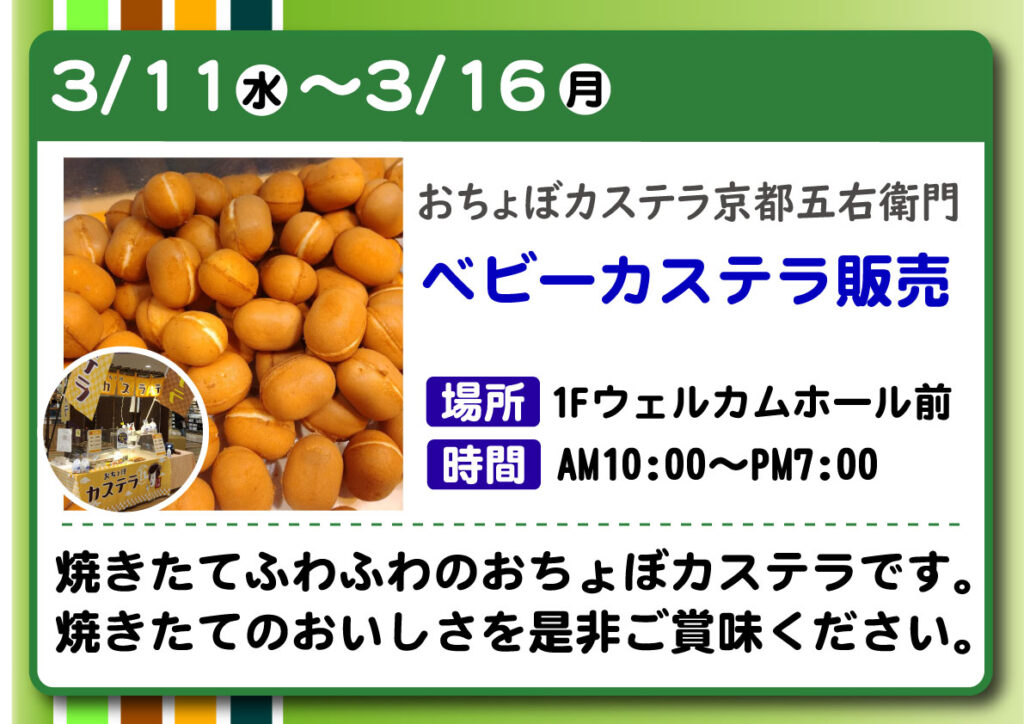 【おちょぼカステラ五右衛門】ベビーカステラ販売