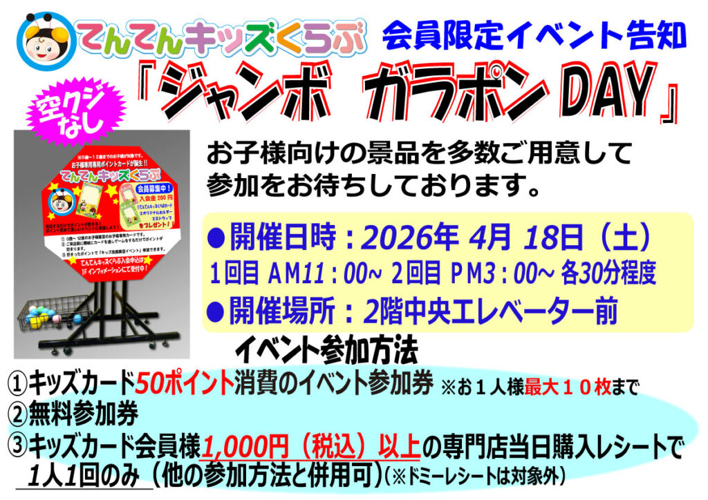 【てんてんキッズくらぶ】ジャンボガラポンDAY