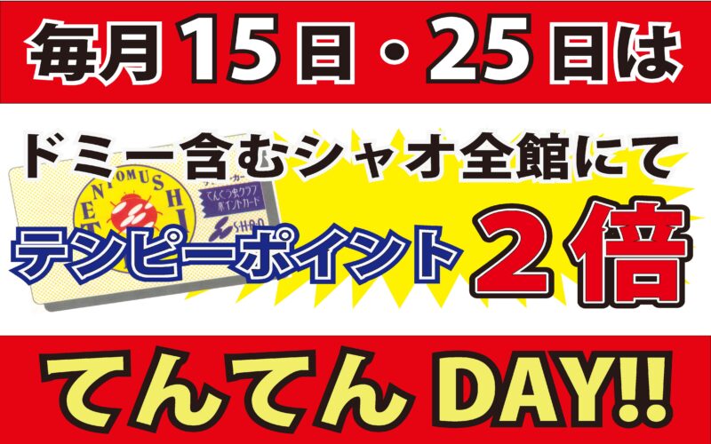 【てんてんDAY】テンピーポイント全館2倍!